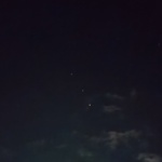 Seppur nuvoloso, il cielo dell’Arenella ci ha regalato uno scenario unico: è visibile l’allineamento dei pianeti Giove Marte e Venere attaccatissimo con Saturno ad Est sopra la Luna! Sono le ore 21 circa per questo scatto e qui non c’è inquinamento luminoso. In questo momento i pianeti si trovano nella loro orbita nella stessa parte di cielo e quindi visibili ad occhio nudo: quindi guardare ad est appena sopra la luna
