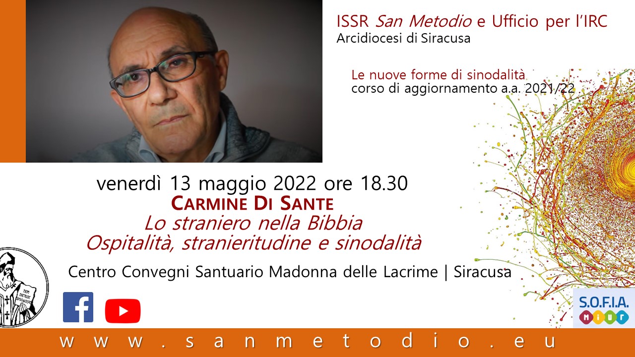 Lo “straniero nella Bibbia” sarà il tema centrale dell’incontro che avrà luogo domani, venerdì 13, al Santuario della Madonna delle Lacrime. Si tratta del decimo appuntamento del corso di aggiornamento on line su Le nuove forme di sinodalità promosso dall’ISSR, Istituto Superiore di Scienze Religiose, San Metodio e dall’Ufficio per l’insegnamento della religione cattolica.