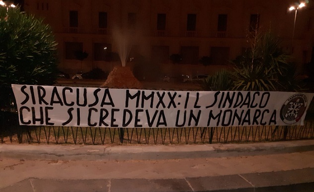 Siracusa, 3 lugio 2020 – “Siracusa MMXX: il sindaco che si credeva un monarca” è il testo dello striscione affisso dai militanti di CasaPound in centro per attaccare Italia e le sue recenti manovre nei confronti dell’opposizione.