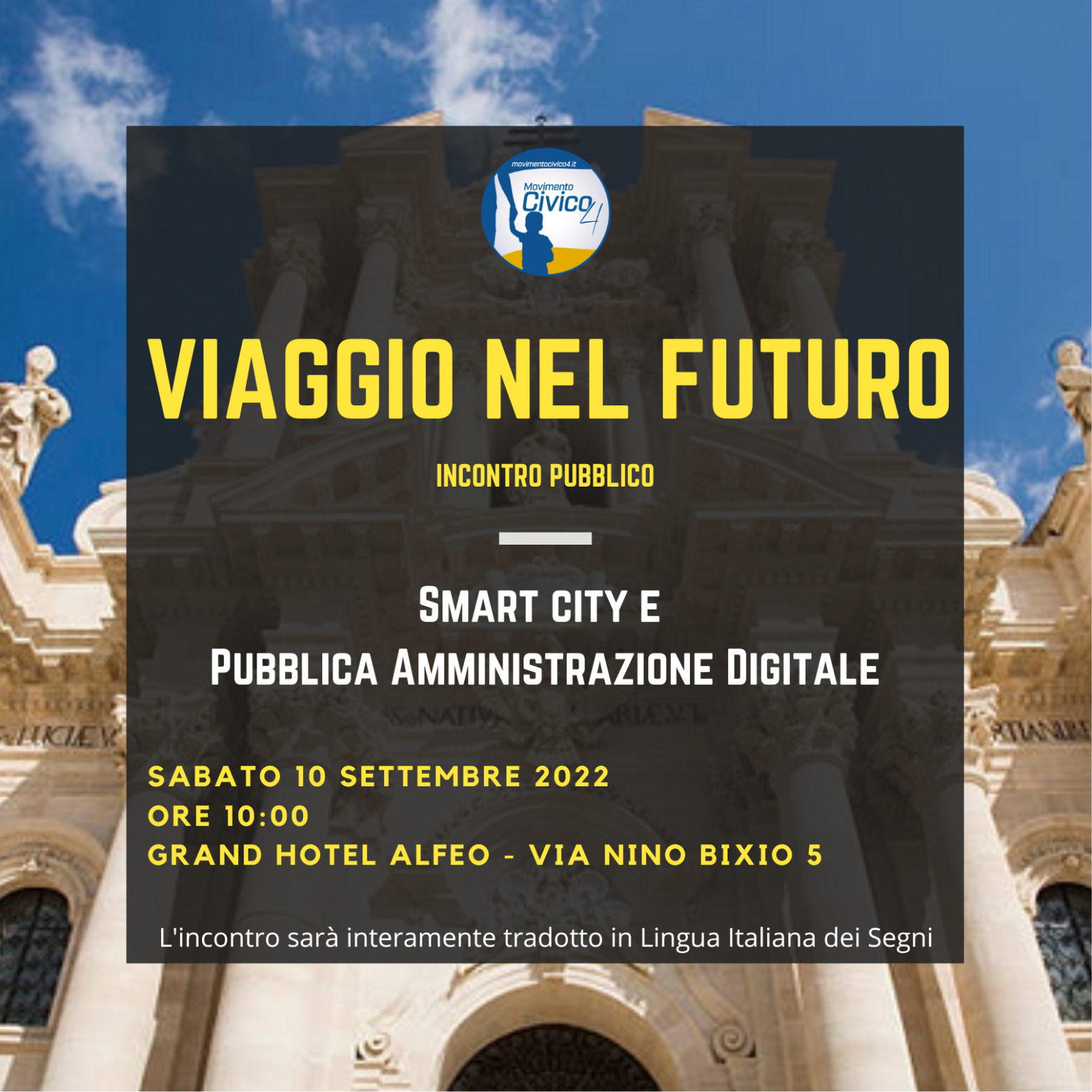 Siracusa, 5 settembre 2022. Con l’arrivo di settembre cominciano gli incontri tematici del movimento “Civico 4”. Il primo appuntamento è stato fissato per sabato 10 settembre alle ore 10 all’hotel Alfeo e riguarderà il settore della Transizione Digitale (un tasto dolente già toccato, in passato, da Civico 4).