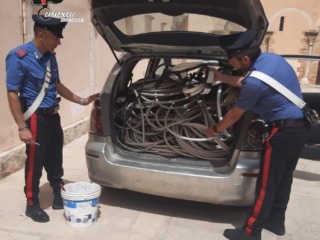 I Carabinieri della Stazione di Siracusa-Ortigia hanno deferito in stato di libertà 5 soggetti, quattro siracusani ed un sardo, responsabili di ricettazione in concorso. I militari durante un posto di controllo hanno notato una Toyota Corolla viaggiare a velocità estremamente rallentata e con gli ammortizzatori quasi a terra. Procedendo al controllo del veicolo hanno sorpreso i 5 soggetti mentre trasportavano nel bagagliaio ed in parte nell’abitacolo 300 kg di cavi di rame di cui non potevano giustificare la provenienza e diversi attrezzi atti al taglio ed allo scassinamento. Inoltre il veicolo era sprovvisto di copertura assicurativa, pertanto i Carabinieri hanno proceduto a denunciare i malfattori e sequestrare la refurtiva, gli attrezzi atti allo scasso e l’autovettura sulla quale viaggiavano.