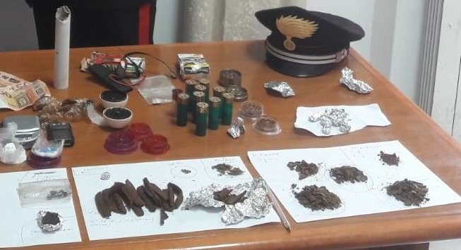 I Carabinieri hanno bloccato l’uomo nella sua abitazione ed a seguito di perquisizione hanno rinvenuto, 100 grammi di marijuana e 40 di hashish, suddivisi in dosi ed occultati in parte negli slip che indossava e in parte in un cassetto del comodino della camera da letto, 200 euro in contanti, presunto provento di attività di spaccio, alcuni bilancini e materiale per il confezionamento.