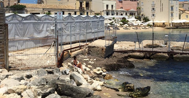 Sbarcadero S. Lucia: da una parte tante persone, molti anziani, che si affollano sul molo o tra i frangiflutti, dall’altra un grande tratto di costa recintato, privatizzato ad uso esclusivo dei clienti di un hotel, il Musciara Resort. In mezzo, a separare le due parti, c’è una rete d’acciaio piazzata quasi sul mare, che recinge pure gli scogli di fronte e impedisce di arrivarci. Storia vecchia, arroganza eterna. Da una parte i cittadini che vedono violati i propri diritti, dall’altra le istituzioni che dovrebbero garantirli. E invece? Invece niente. O forse hanno anche rilasciato tutte le autorizzazioni e le carte sono tutte a posto. Ma tutto a posto non è. Non è a posto il diritto sancito dalla legge di godere liberamente di un bene che appartiene a tutti, come per tanti altri accessi che dovrebbero essere liberi e invece sono impediti. Non è a posto il senso comune di giustizia. Non è a posto il rispetto della stessa Costituzione.
