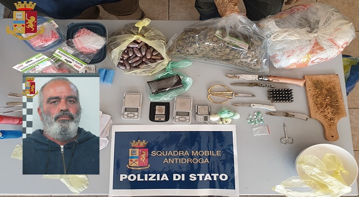 Agenti della Squadra Mobile della Questura di Siracusa, unitamente alle Unità Cinofile della Questura di Catania, hanno arrestato Pasqualino Daidone , siracusano di 51 anni, già conosciuto alle forze di polizia, per detenzione ai fini di spaccio di sostanza stupefacente e detenzione illegale di munizionamento di arma comune da sparo.