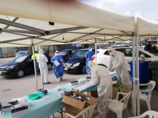 Personale del Gruppo Covid dell’Asp di Siracusa e dei Distretti sanitari di Lentini e Noto ha allestito, grazie alla collaborazione dei sindaci, dei dirigenti scolastici, della Marina militare di Augusta, con l’ausilio della Protezione civile, della Croce Rossa Italiana e dei Comandi dei Vigili urbani, sedici postazioni con il metodo del drive in dal 15 al 17 gennaio 2021 interessando tutti e 21 comuni della provincia di Siracusa. Su 7.234 tamponi rapidi eseguiti sono risultati complessivamente 47 positivi che sono stati sottoposti a tampone molecolare per la conferma.
