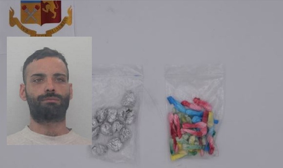 Gli agenti, diretti dal Capo della Squadra Mobile Gabriele Presti, nel corso dei citati servizi antidroga,intervenivano in un complesso abitativo di via Algeri e, salendo la scala di un palazzo,si dirigevano sul terrazzo per effettuare una verifica.Seduto sulle scale trovavano Gugliotta Christian che, alla vista degli agenti,mal celava un certo nervosismo anche perché conosciuto dai poliziotti come soggetto orbitante nel mondo degli stupefacenti.Gli agenti, insospettitosi,anche perché l’uomo non risultava residente in quel palazzo, lo perquisivano rinvenendo e sequestrando 45 dosi di cocaina e 18 involucri di marijuana per un valore complessivo di oltre 1.000 euro.L’uomo è stato posto ai domicili