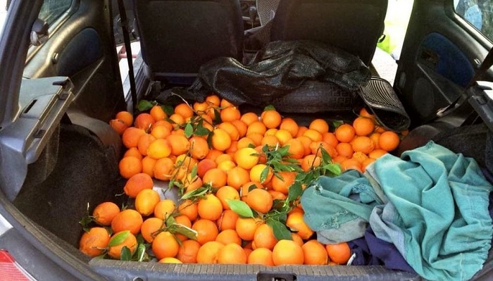 Gli stessi stavano tentando di asportare circa 500 chilogrammi di arance già suddivisi in 5 sacchi.