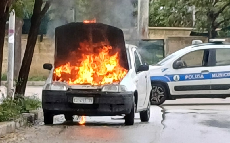 L’autovettura é stata tempestivamente abbandonata dal conducente e l’area é stata mantenuta in sicurezza da una pattuglia della PM.