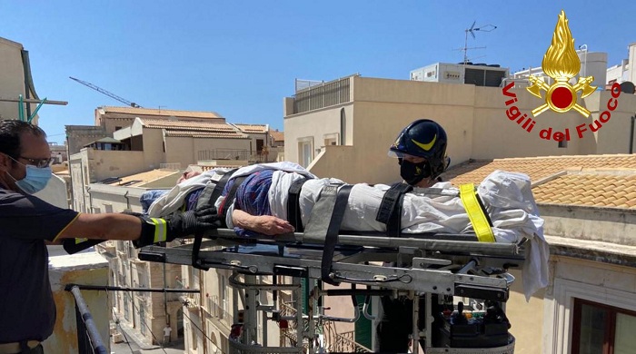 Questa mattina i vigili del fuoco di Siracusa sono intervenuti in via Vittorio Veneto a supporto del 118 per soccorrere un’anziana signora che non riusciva autonomamente a scendere le scale per essere trasportata in ospedale dal personale sanitario. L’intervento è andato a buon fine con l’ausilio dell’autoscala.