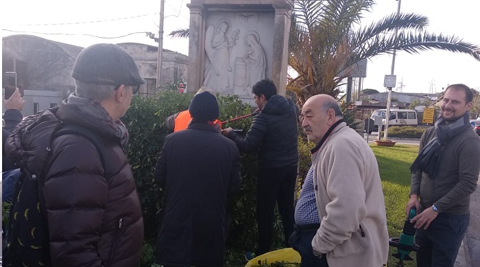 L’iniziativa ha visto i soci armati di buona volontà sistemando l’edicola votiva opera dello scultore.