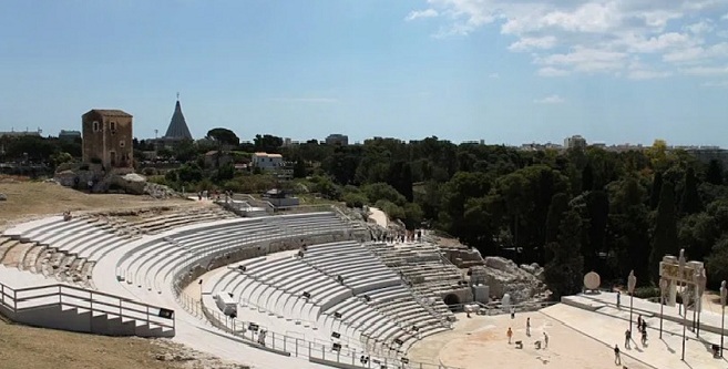L’Isola della Luce di Nicola Piovani con Tosca, Massimo Popolizio e il soprano Maria Rita Combattelli ha inaugurato ieri sera al Teatro Greco di Siracusa, Inda 2020 Per voci sole, il progetto speciale prodotto dalla Fondazione Inda in programma fino al 30 agosto.