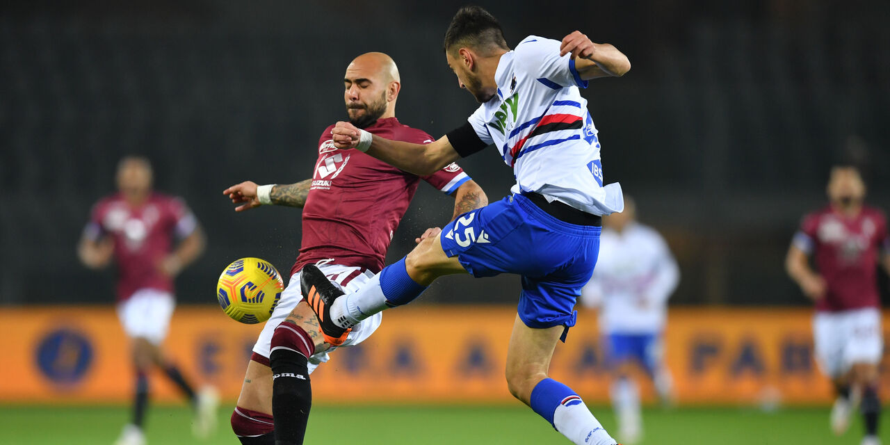 “ Nona Giornata Serie A Tim 2020/2021 “Una Sampdoria a due volti, due pesi,due misure!” Torino2 (Belotti-Meite’) Sampdoria 2 (Candreva Quagliarella) Dallo Stadio Grande Torino:Audero:6,5 Beres:5 Ferrari:6 Augello:6 Yoshida:5,5 Verre:5,5 Jankto:4 Candreva:7 Thorsby:6,5 Ekdal:5 Quagliarella:7Gabbiadini:5,5 Tonelli: Sv Silva: 5,5 Dasmsgaard: 5 Ramirez:SV All: Paolo Benetti: 5 lotti beffa Audero. La Sampdoria tenta invano il pari con Quagliarella, Verre,Candreva nulla da fare . Nel primo tempo Una Sampdoria involuta , una crisi di identità mentale e fisica. Una squadra imbarazzante, senza idee, senza gioco, una squadra in bambola. Occasione Sampdoria al 45’ con Quagliarella salva Sirigu. 53’ la Sampdoria pareggia: Asse Quagliarella per Candreva è pari. È un’altra Sampdoria, più accesa . 59’ Audero salva su Ricardo Rodriguez. 63’ la Sampdoria ribalta : Asse Candreva Quagliarella, Capitano Fabio Quagliarella al volo beffa Sirigu. Audero salva su Zaza. Nella ripresa una Sampdoria a due volti, più determinata, più accesa, più aggressiva. 74’ gol annullato al Torino di Belotti per offside. La Sampdoria c’è. 77’ il Toro pareggia su corner di Meite’. Audero salva su Verdi. Ramirez salva la Sampdoria. Damsgaard fuori oltre la traversa. Torino e Sampdoria finisce in parità , 2-2. Simone Mora.