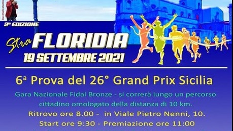 Floridia 14.9.2021 – Dopo il successo della prima edizione, nel 2019, e lo stop causato dalla pandemia da covid, nel 2020, torna la StraFloridia: manifestazione di atletica leggera di corsa su strada, inserita nel calendario nazionale Fidal (Bronze Label) e valida come sesta prova del 26esimo Grand Prix Sicilia di Corsa Senior Master.