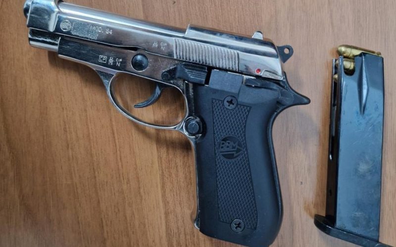 Gli agenti, una volta bloccato il veicolo, notavano un certo nervosismo dell’uomo e procedevano quindi alla perquisizione del mezzo a seguito della quale rinvenivano una pistola marca Bruni mod.84 cal.9 modificata a cal.7,65 con matricola abrasa, un tirapugni, nonché 56 di hashish.