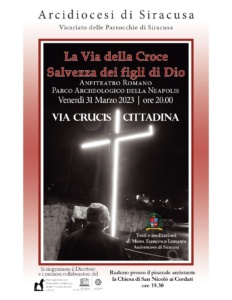 Anche quest’anno – promossa dal Vicariato delle Parrocchie di Siracusa e organizzata dalla Basilica~Santuario Madonna delle Lacrime – sarà celebrata la Via Crucis Cittadina presso il PARCO ARCHEOLOGICO DELLA NEAPOLIS in Siracusa.