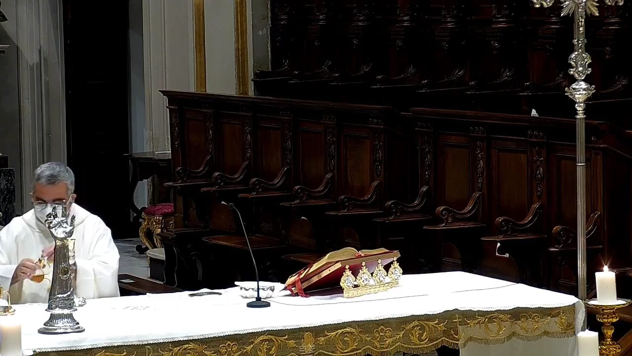 Il parroco della Cattedrale di San Giovanni Battista don Giuseppe Burrafato, alla fine ha ringraziato per aver celebrato oggi. Lo stesso Don Giuseppe, ha ricordato il 20 anni di sacerdozio che ci legano con altri 7 sacerdoti. Domani la funzione religiosa sarà celebrata da don Giuseppe Raimondi, parroco di San Pietro apostolo. Il parroco Don G. Burrafato, sarà il 28 giugno per celebrare la santa messa da San Pietro. Le funzioni religiose dalla Cattedrale, sono trasmesse da Radio karis, la radio diocesana. Immagine dalla pagina di radio Karis.